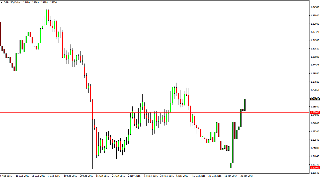 The British pound broke above the top of a hammer from the session on Tuesday during the Wednesday session. This shows quite a bit of strength, and thus I think that the 1.25 level will start offering quite a bit of support in a potential “floor” in this market. The British pound is starting to show real signs of strength again, and I believe that given enough time we will reach towards the 1.22750 level which has been resistance in the past. I think the support extends all the way down to the 1.24 handle, so quite frankly I have no interest in shorting this market.