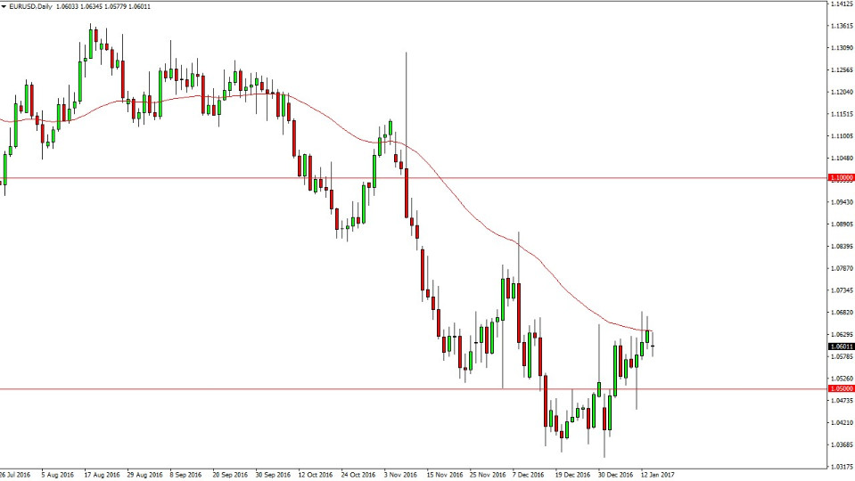 The EUR/USD pair went back and forth on Monday, but the most important thing that I saw was the 50-day exponential moving average acting as resistance for the session. The same thing happened on Friday, so I find it interesting that we repeated that pattern on Monday. If we can break down below the bottom of the candle for Monday, I think that the market will reach to the 1.05 handle. Alternately, I believe that the 1.07 level above is massively resistive, and of course should continue to bring in sellers. Either way, I don’t like the idea of buying, so I’m waiting for sell signals in general.