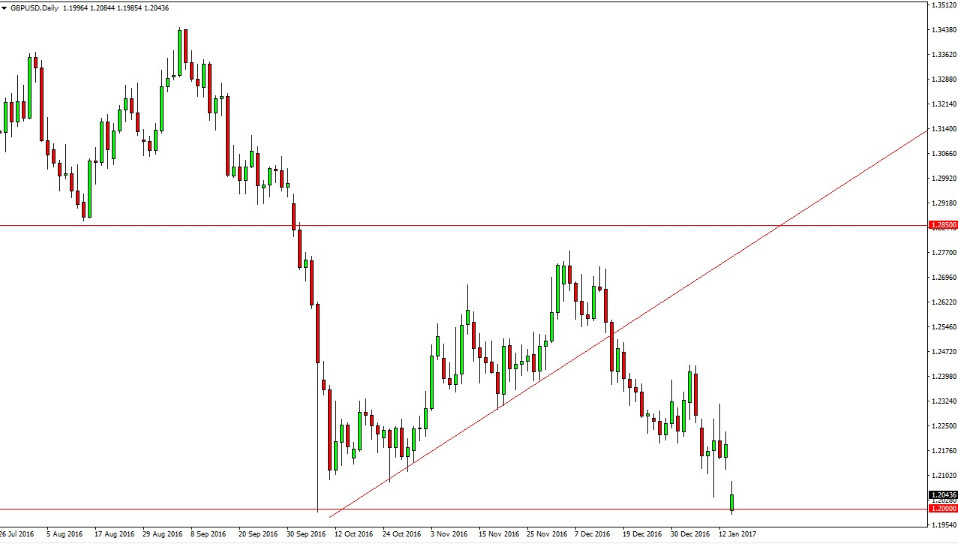 The British pound gap lower at the open on Monday, testing the 1.20 level underneath. By doing so, the market looks as if it is trying to break down below there but we did bounce. I think the gap will get filled, and then the sellers will return to the marketplace as per usual. A breakdown below the 1.20 level census market looking at much lower levels, perhaps even the 1.15 level underneath there. That’s an area that’s massively supportive on monthly time frames, which of course means something to most traders. Even though the British pound is falling apart, I would anticipate that a move down to the 1.15 level will be messy, and it certainly will find a lot of buying pressure.