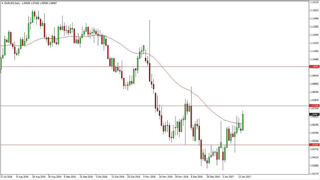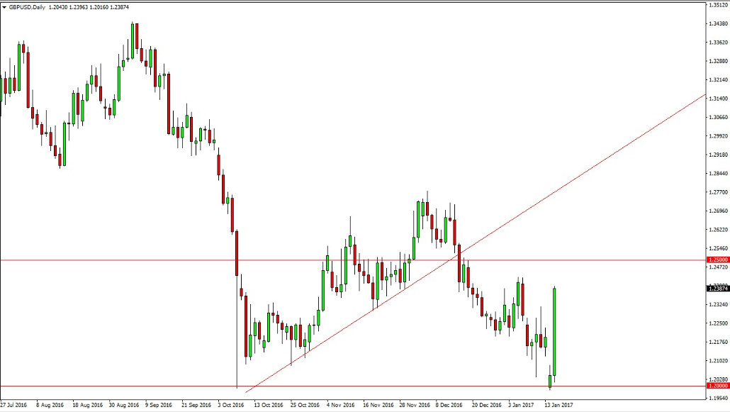 The British pound rallied rather significantly during the day on Tuesday, as the speech from Teresa May suggested that the United Kingdom was going to work very closely with the European Union after the exit. Because of this, it seemed to calm quite a bit of nerves when it came to the British pound, but I still see a significant amount of resistance at the 1.25 level above. That’s an area where think sellers will step back into the marketplace, but if we the daily close above there I would recognize that the longer-term trend could be changing. This is a massively impulsive candle, so I think there will be a bit of follow-through, but quite frankly I’m a bit surprised by the reaction. After all, it’s hard to fathom the idea that the United Kingdom and the European Union would suddenly be hostile towards each other. Beyond that, the United States, Canada, New Zealand, Australia, and a host of other countries are more than willing to step in with trade agreements when it comes to the United Kingdom.