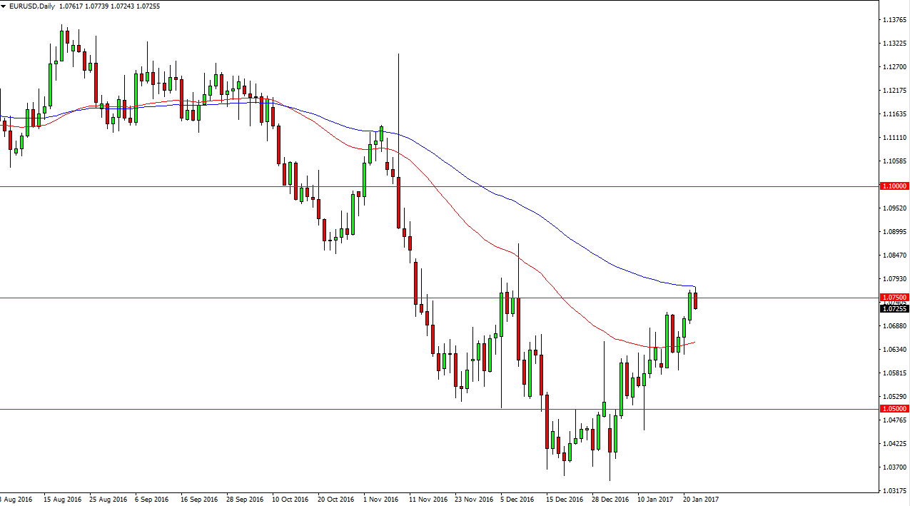 The EUR/USD pair at the beginning of the session on Tuesday, but found the 100-exponential moving average to be far too resistive to clear. Now that we are finding selling pressure of the 1.0750 level, i.e. begin to wonder whether we have run out of steam. If we can break down below the bottom of the candle, and more importantly the 1.07 level, the market should continue to go much lower. Ultimately, I also believe that the market will go much higher if we can close above the 100-exponential moving average as I mentioned yesterday. I think we’re going to see quite a bit of volatility, but the market is now at a place where we need to make some serious decisions. Because of this, waiting for a daily close to dictate the next position is probably the wisest choice of actions.