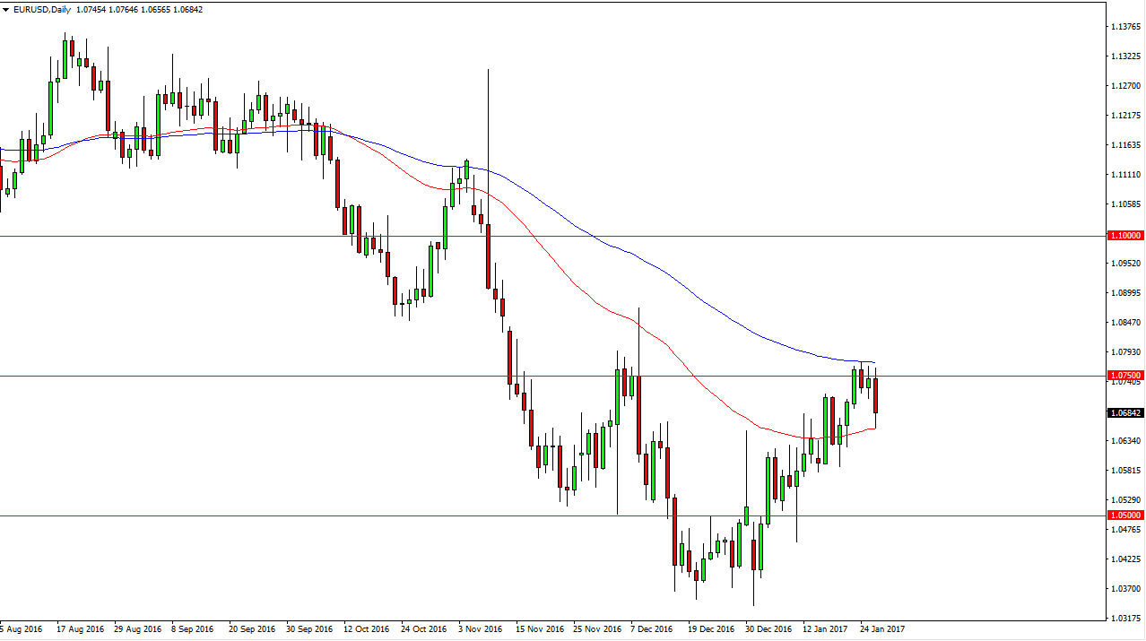 The EUR/USD pair broke down during the day on Thursday, touching the 50-day exponential moving average. We did find a bit of buying in that area though, so it looks as if we are going to continue to consolidate although I now believe that the sellers are starting to step up their pressure. Currently, I believe that a break above the blue exponential moving average on the chart, which is the 100-day exponential moving average, is a buying opportunity. Alternately, a breakdown below the red 50-day exponential moving average on the chart is a selling opportunity. It will be choppy regardless a we do, but quite frankly that will be the nature of Forex markets over the next several weeks anyway.