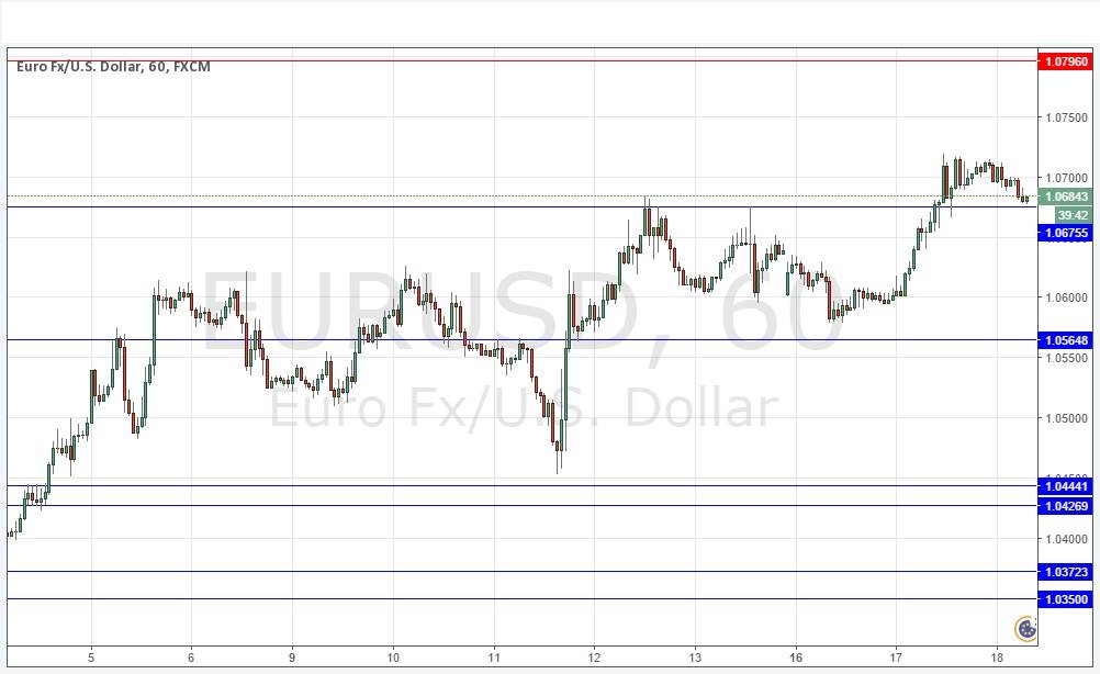 Yesterday’s signals were not triggered as there was no bearish price action at 1.0683 or 1.0698.