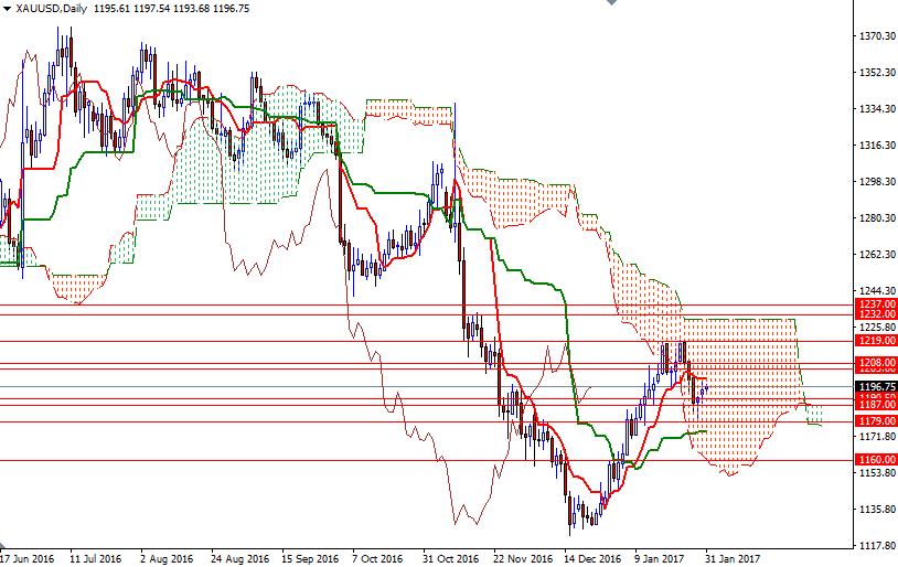 The bulls will need to take out the resistance at 1200.23, which happens to be the daily Tenkan-sen, if they want to have a chance to make an assault on the 1208/5 zone. I think this level is a strategic point for the bulls to conquer so that they can proceed to 1213/2. Closing beyond 1213 would make me think that the bulls are getting ready to test 1220/19. To the downside, the initial support stands in 1195/3, followed by 1190.50-1187. A decline below 1187 would put some pressure on the market and drag prices towards the 1179/7 zone. If XAU/USD dives below 1177, then the 1171/69 area will be the next port of call.