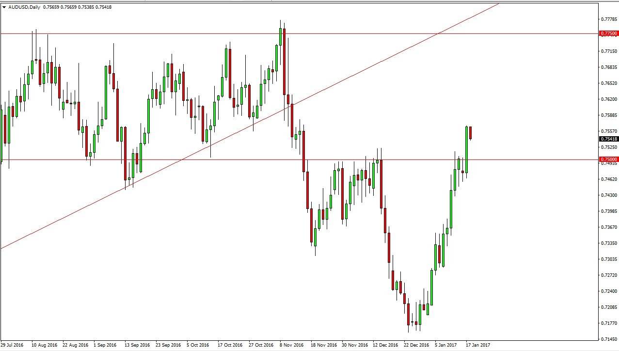 The Australian dollar pulled back slightly during the day on Wednesday, after having such an explosive session on Tuesday. The 0.75 level continues to be important in this market, and because of that I think it will be vital to stay above there for the buyers to continue to push the pair higher. If we breakdown below the 0.75 level, it’s likely that the market will continue to fall from there. The gold markets will of course influence this market, they always do, so pay attention to that contract. If gold can break above the $1230 level, I think this is a market that will continue to grind its way to the upside.