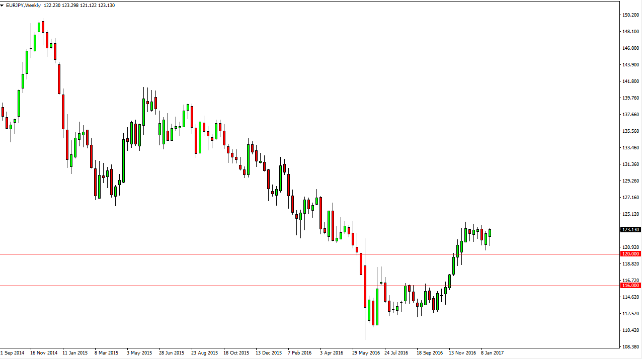 The Euro initially fell against the Japanese yen during the week but turned around to form positive momentum. Because of this, I believe that the market is trying to reach the 125 level. However, there is a significant amount of resistance at the 124 level, so I prefer buying short-term pullbacks that offer support to go back and forth in this market.