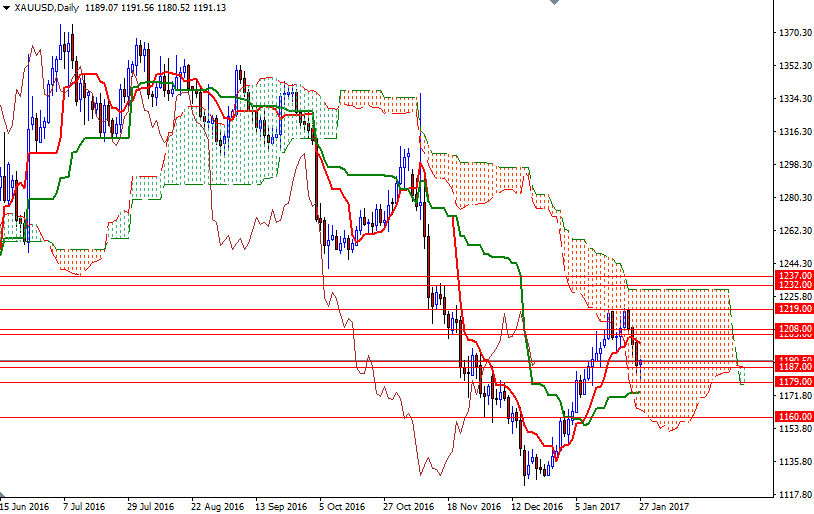 The market’s inability to penetrate the resistance in the 1220/19 area was also behind last week’s decline. Just a week ago I had warned that we could see a pullback before gaining enough momentum to approach the 1250/46 region. Friday’s candle suggests that there are buyers around the 1179 level but the market is below the Ichimoku cloud on the 4-hour time frame. In other words, although we found some support in the vicinity, it might be in danger again unless XAU/USD break through 1208/5. But of course, the bulls will need to push prices beyond 1200-1198 so that they can approach that region. Anchoring somewhere above 1208 would improve the short-term technical picture and open a path to 1220/19. To the downside, the initial support stands in the 1179/7 zone. If the market breaks down below 1177, then 1171/69 will probably be the next stop. Once below that, look for further downside with 1165 and 1160/57 as targets. The bears have to capture this strategic camp in the 1160/57 region to set sail for the 1145 level.