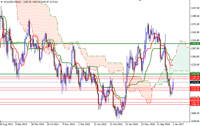 Gold prices ended the week up $22.31 at $1172.61 an ounce, as a retreat in the dollar took some pressure off the precious metal. The XAU/USD pair traded as high as $1185 but gave up some its gains on Friday after the December U.S. employment report showed a slowdown in hiring but the strongest wage growth since 2009. Minutes from the Federal Reserve's December 13-14 meeting released Wednesday showed that the biggest risk to the economic outlook was a continued drop in the unemployment rate which might spark inflation. "While viewing a gradual approach to policy firming as likely to be appropriate, participants emphasized the need to adjust the policy path as economic conditions evolved. They pointed to a number of risks that, if realized, might call for a different path of policy than they currently expected" according to the minutes. Gold has rebounded nearly 4.45% from last month's low of $1122.55.