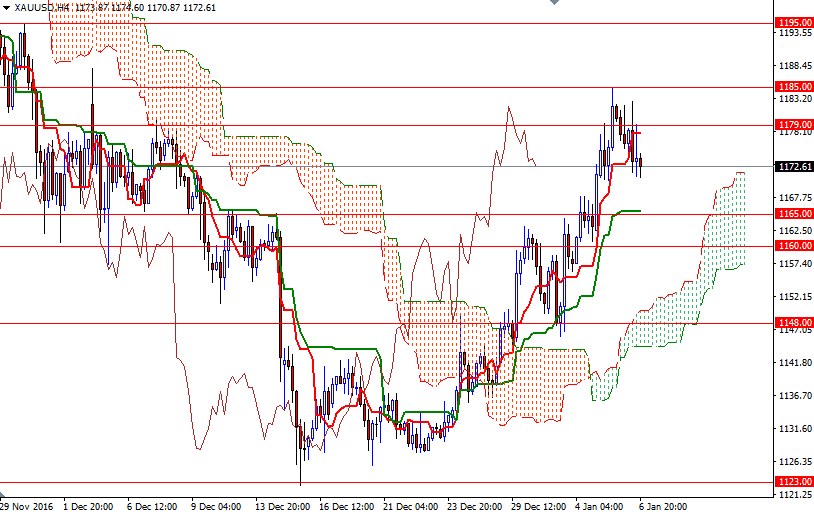 Fed officials say that they will not hesitate to shift gears to do what is right to meet the Fed's long term objectives, if inflationary pressure increase. However, there is still a lot of uncertainty about the incoming Trump administration and I think that could give a temporary respite to gold - though prices are likely to face significant amount of resistance in the 1212.60-1230.55 area where the weekly and daily Ichimoku clouds overlap. On the 4-hour time frame, XAU/USD is trading above Ichimoku clouds and the Tenkan-Sen (nine-period moving average, red line) and the Kijun-Sen (twenty six-day moving average, green line) lines are negatively aligned, indicating that the bulls are currently in charge. On the other hand, the market still resides below the clouds on the weekly and daily time frames, suggesting that the downside risks over the medium-term remain.