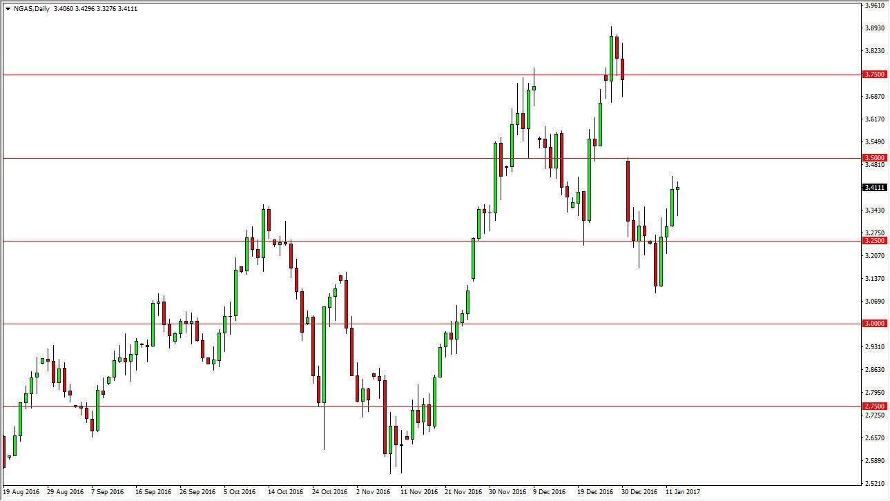 The natural gas markets fell initially on Friday but turned around to form a massive hammer. The hammer of course is a bullish sign, and we are oversold at the moment. At the $3.50 level is the bottom of the massive gap that send this market lower, so that’s the beginning of massive resistance. Because of this, I feel that short-term traders might be able to take advantage of this bounce, but I’m a little bit more comfortable waiting for an exhaustive daily candle that I can start selling as the gap was so vicious. Natural gas markets will continue to suffer at the hands of warmer weather in the northeastern corridor of the United States, which of course is the largest consumer of natural gas in the world.