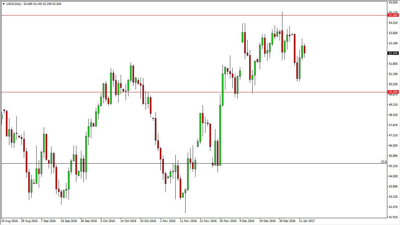 The WTI Crude Oil market fell on Friday, as we have gotten a little bit overextended. Ultimately, this is a market that should continue to be choppy in general, and as we continue to consolidate I expect a lot of volatility. The $55 level above is resistive, just as the $50 level underneath is supportive. Because of this, expect a lot of back and forth trading, as we come to terms with whether there is an oversupply issue. Personally, I believe there is but the market isn’t entirely convinced quite yet. If we did break above the $55 level, the market should then reach towards the $60 level. Ultimately, the one thing I think you can count on is that this will not be a market for the squeamish.