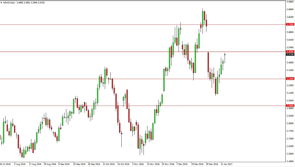 The natural gas markets rallied after initially gapping and then pulling back to fill that gap on Monday. The $3.50 level was where the massive gap ended from a couple of weeks ago, I think we are about to see this market try to fill that gap, so short-term traders will more than likely get involved above the level. Ultimately, I think that given enough time the sellers will return because that gap was so vicious. Impulsive moves like that typically means something longer-term, and although this is an extraordinarily volatile market, that tends to be true here as well.
