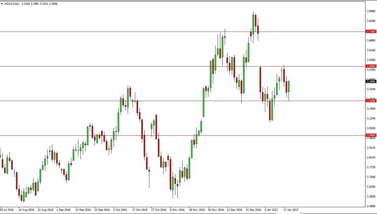Natural gas markets bounced off the 3.25 level rather viciously as the inventory number was a lot more bullish than people would have expected. Because of this, I think that the market within reach towards the 3.50 level above. That’s an area where we begin a significant gap though, so we can break above there I think we will fill that gap and reach all the way to the 3.73 level. Ultimately, this is a market that should continue to see quite a bit of volatility but I do not like natural gas longer-term. I realize that sooner rather than later the weather will turn in the northeastern part of the United States, offering less demand for the commodity.