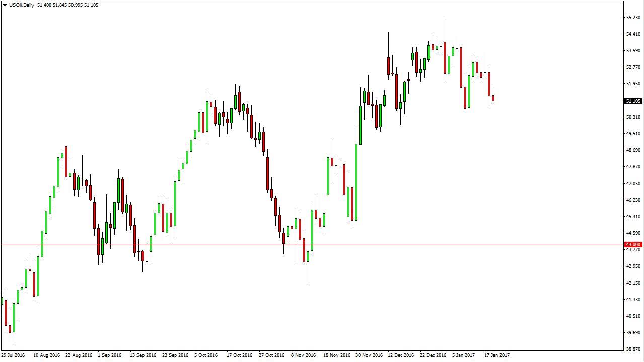 The WTI Crude Oil market initially tried to rally on Thursday but after a bearish inventory number coming out of the United States, the market rolled over and ended up forming a shooting star yet again. The $51 level underneath should continue to be supportive, and thus there is quite a bit of volatility all the way down to the $50 level. Rallies of this point in time should be selling opportunities, as I believe the market is finally starting to focus on the oversupply issue. The US dollar rallying has of course worked against the value of oil as well, and I think we are starting to see real weakness slip into the marketplace as oversupply becomes increasingly apparent.