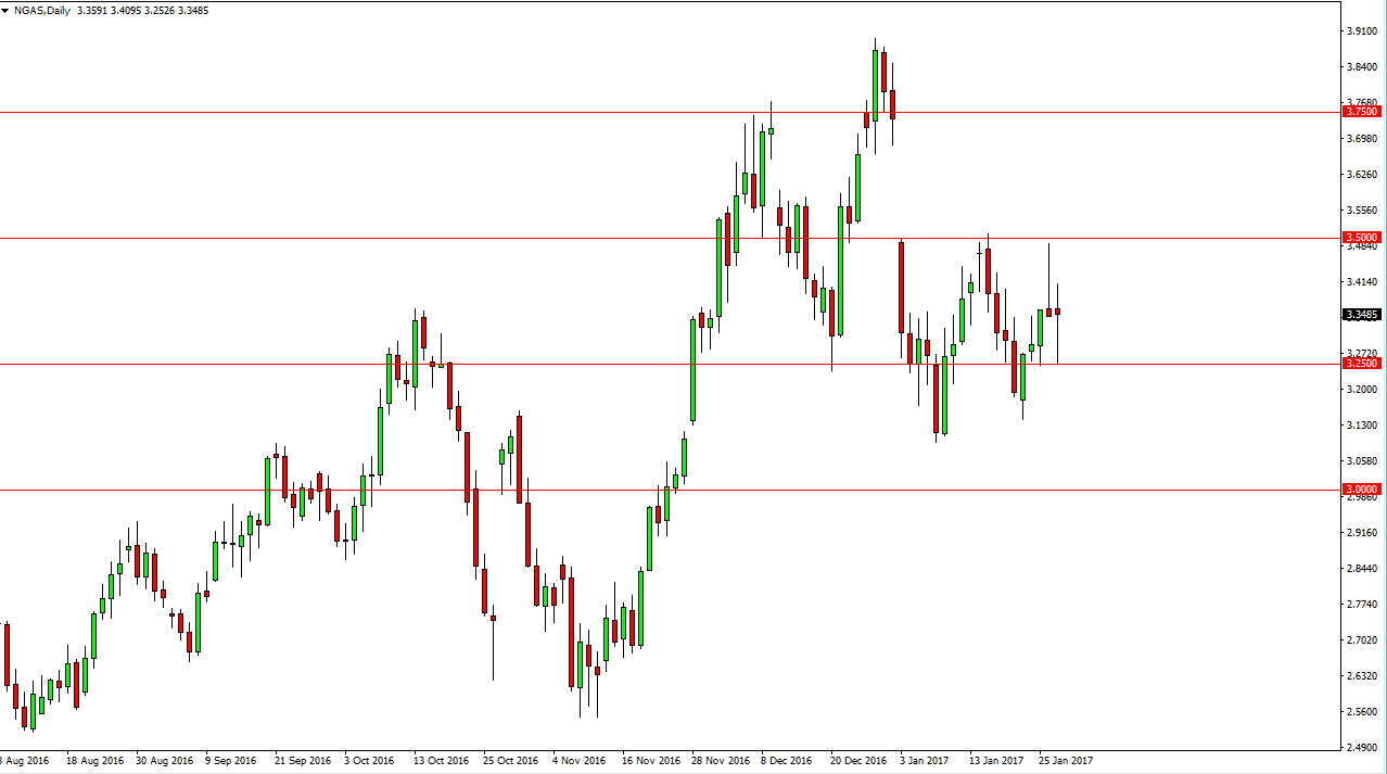 The natural gas markets fell initially on Friday, testing the $3.25 level. We found enough support to turn things around and formed a hammer, and with this being the case, the market looks as if it is going to remain very volatile and trade between the $3.25 level on the bottom, and the $3.50 level on. Currently, I think we continue to chop around but if we can break above the $3.50 handle, I think we will fill the gap and then reach towards the $3.73 level. If we can break down below the $3.25 level, the market will more than likely reach down to the $3.10 level underneath. Regardless, volatility is going to be a mainstay in this market for the near future, as natural gas markets tend to be very volatile this time of year. I believe ultimately that the market sells off longer-term, as the supply were overwhelmed demand.