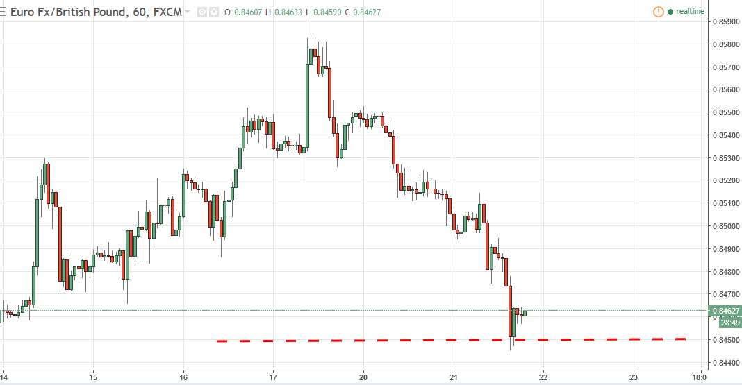 This pair has been in a downtrend for several days, but started to see a little bit of life near the 0.8450 handle. The 0.8450 level has significance on longer-term charts, so of course I am paying attention to that.