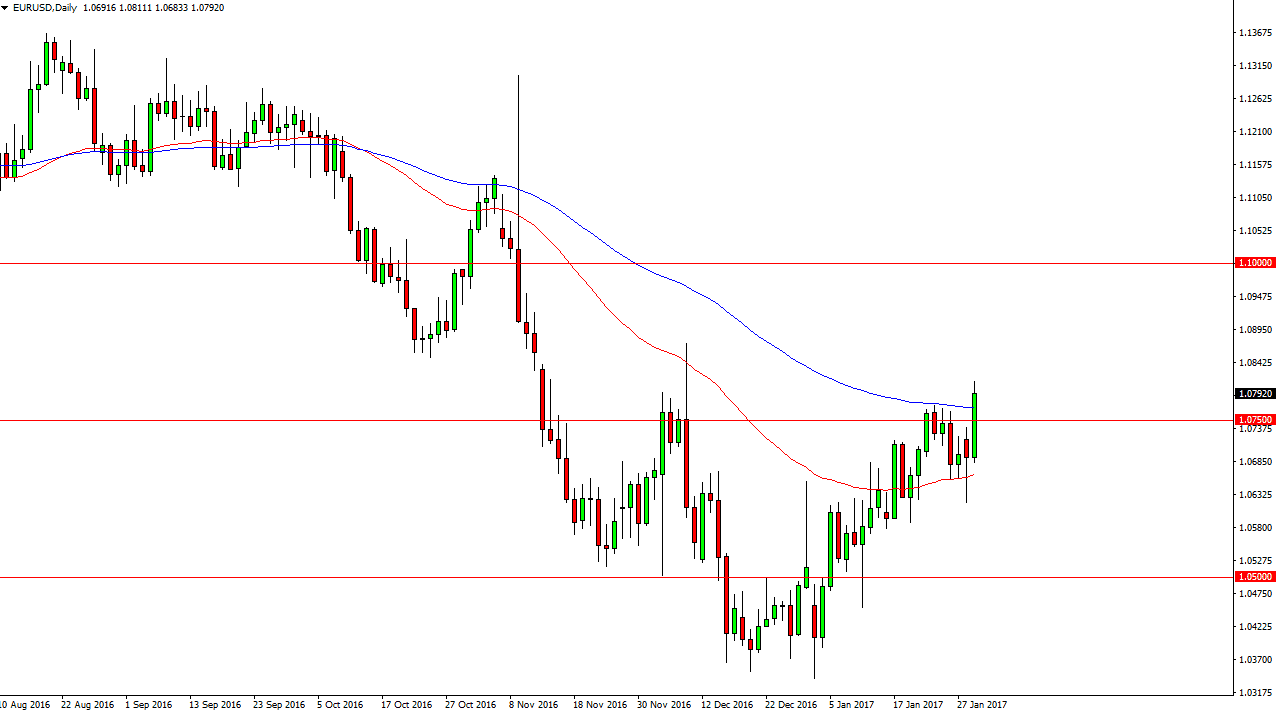 The EUR/USD pair broke higher during the session on Tuesday, clearing the 100-day exponential moving average. A break above the top of the candle should then send the market towards the 1.10 level above which is resistance as well. Currently, I’m paying attention to the hammer from the Monday session should continue to be massively resistive, and with that being the case it’s likely that the buyers will return in the short-term, and having said that I think that it will be choppy but it looks as if the Euro is going to continue to be relatively levitated against the US dollar. The candle of course looks very strong, so this is another reason I feel that the market should continue to show bullishness.