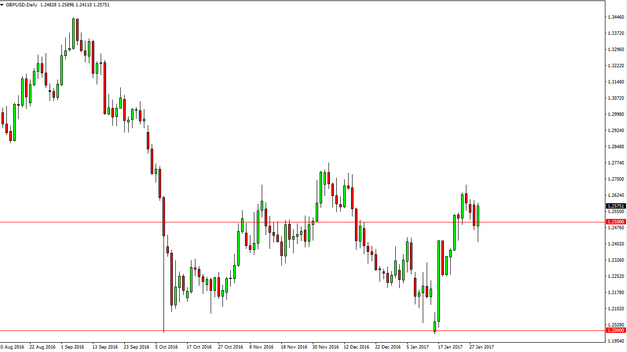 The British pound fell significantly at the beginning of the session on Tuesday, but found enough support near the 1.24 level to turn things around and formed a bullish candle. A break above the top of the candle should be a signal that the market is reaching towards the 1.2750 level above. If we can clear there, the market should then go much higher. Ultimately, this is a market that continues to show choppiness, and as this being the case, I think that you must be a short-term trader but it looks to me as if the British pound has tried to form a bottom, and with that being the case is going to be very choppy going for but I think longer-term traders will continue to hang on to the British pound. I have no interest in shorting this market into we get well below the 1.24 level, if not the 1.2250 level under there.