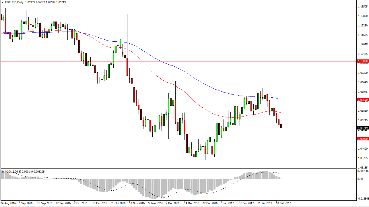 The EUR/USD pair initially tried to rally during the day on Tuesday, but found enough resistance above the turn things back around and form a shooting star. Breakdown below the bottom of it should send this market down to the 1.05 level, which is a psychologically significant number. That should offer support, so I think a short-term bounce is coming down near that level. However, it’s become obvious to me that the rallies will continue to be selling opportunities, as the US dollar strengthens. Janet Yellen suggested during a speech in front of Congress during the session that interest rate hikes could be coming, especially if the economy keeps going the way it has in America. Because of this, looks like the longer-term downtrend continues.