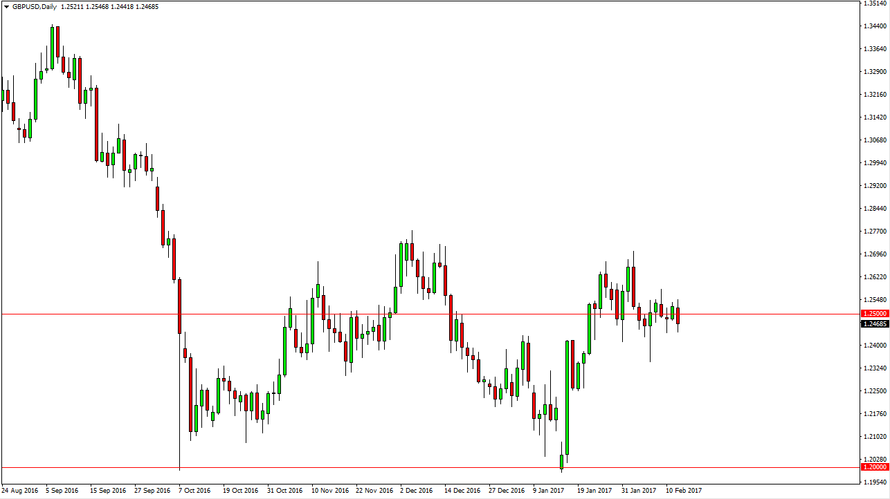 The British pound fell slightly during the day on Tuesday, as we continue to bounce around the 1.25 level. Ultimately, I think there is a massive amount of support just below, especially considering that we have such a massive hammer during the previous week. I believe that the market will offer is a buying opportunity, but we haven’t quite yet. I think currently the British pound traders are trying to decide what to do next. It’s possible that we have in fact seen a bottom in this pair, but that’s not going to be something that’s very clean. Anytime you see a trend change, it gets very ugly and choppy.