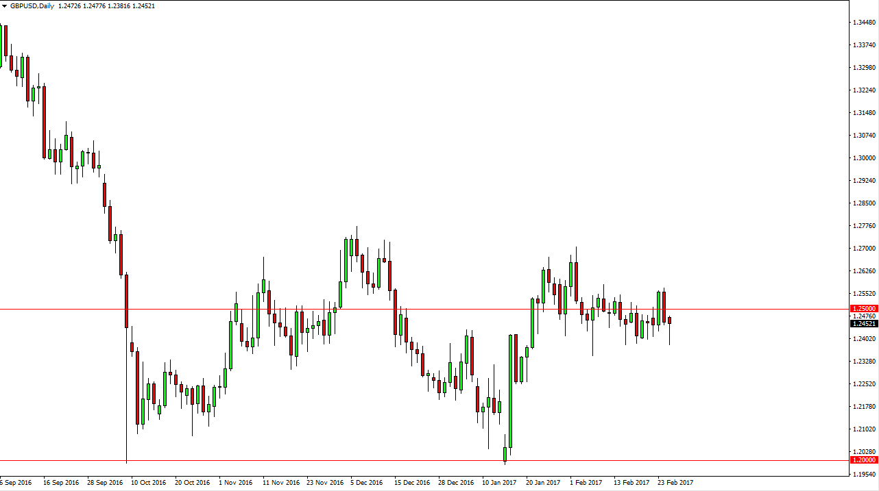 The British pound initially fell against the US dollar, but found enough support near the 1.24 level to turn things around and form a hammer. That’s a very bullish sign, and I believe that we will eventually break out to the upside and reach towards the 1.27 level. Ultimately, I think that the market is essentially consolidated with an upward bias, so I think pullbacks are buying opportunities, such as the one we have just seen. I believe that we will eventually break out to the upside, but I don’t think were ready to do it quite yet. After all, there will be a “knee-jerk reaction” to the triggering of Article 50, but I think that will be the last of the massive selling pressure. In the meantime, buyers continue to jump into this market but if we break above the 1.27 level, we should then reach towards the 1.28 level.