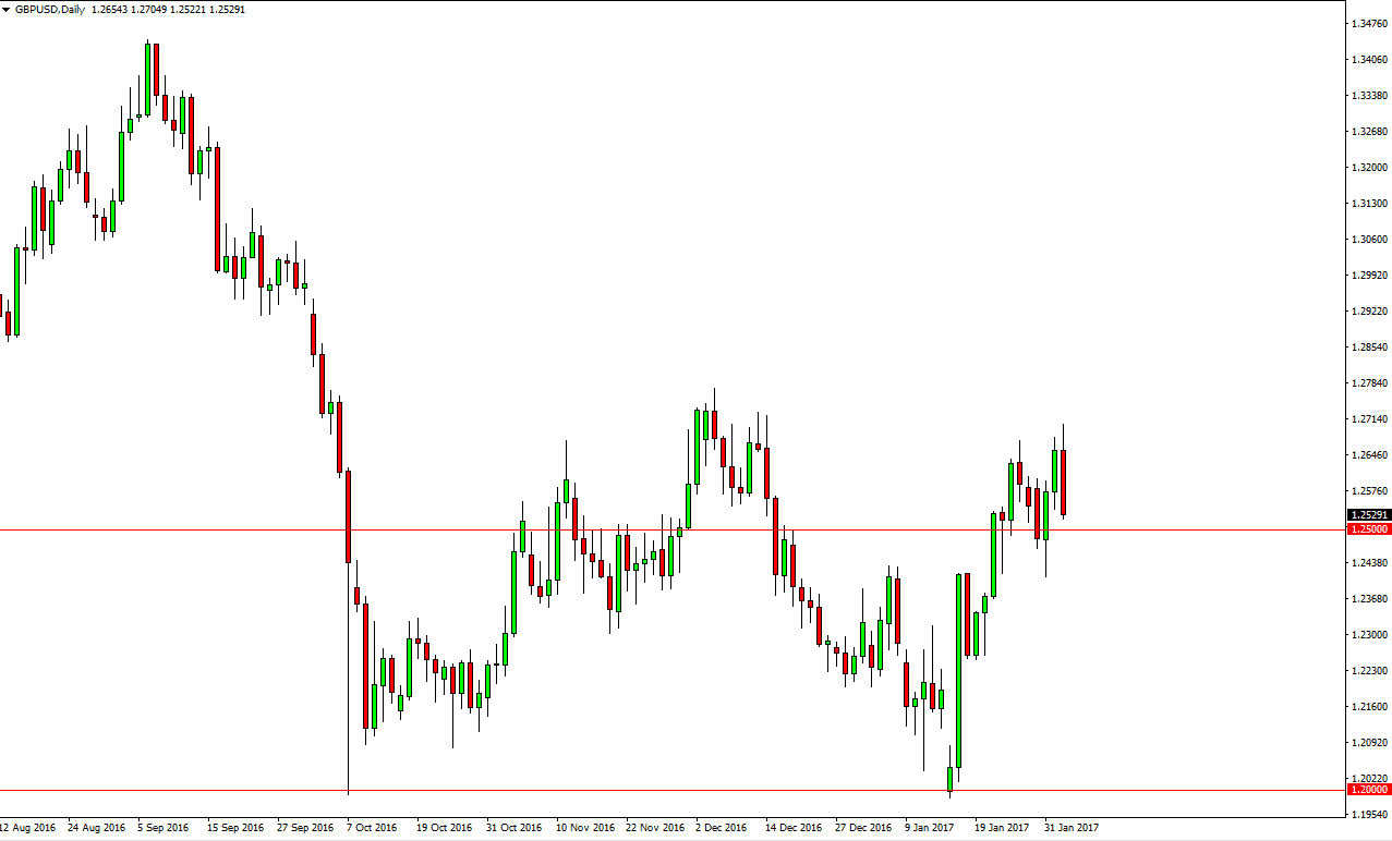 The British pound initially tried to rally during the day on Thursday as well, but also fell as we reached towards the 1.25 handle. I see a significant amount of support just below the 1.25 level and extending down to the 1.24 handle, so it’s likely that the market should continue to find buyers just underneath, and thus I believe it’s only a matter of time before the buyers get involved and start pushing higher again. Ultimately, this is a market that should then reach to the 1.2750 level. The jobs number of course will add a lot of volatility, so expect that. However, in the end I think that the British pound has started to form a bit of a bottom, and longer-term it’s likely that the buyers will return repeatedly. However, we breakdown below the 1.24 level then that gives me pause for concern. Anytime we see a potential trend change, things get choppy and volatile and that’s essentially what I’m looking at right now.