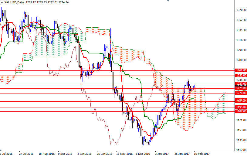 Gold prices rose on Wednesday after choppy trading session. The XAU/USD pair traded as low as $1213.63 an ounce as the dollar edged higher on the back of on the back of solid U.S. economic data. The Labor Department reported its consumer price index jumped 0.6% in January, well above expectations for a rise of 0.3%. In a separate report, the Commerce Department said retail sales increased 0.4% last month.