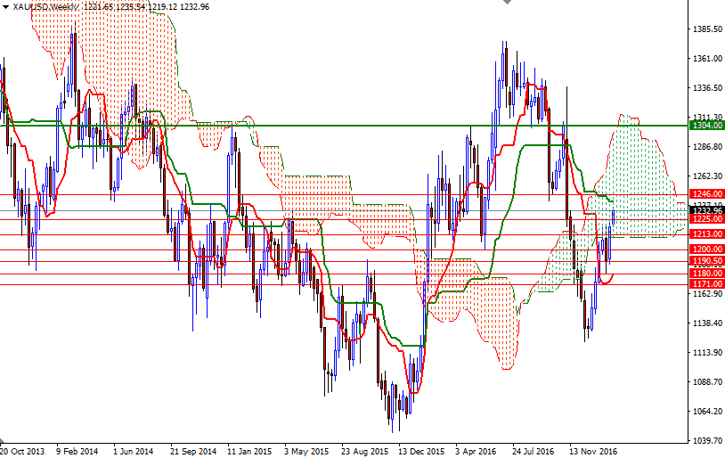 Gold prices ended Monday’s session up $13.31, extending gains to a third straight session, as economic and political risk elements sent investors seeking shelter in safe havens. The XAU/USD pair broke through the $1225 resistance and marched towards the $1237 level as expected. Investors are monitoring developments in the euro zone and wondering country will be next on U.S. President Donald Trump’s list to call out.
