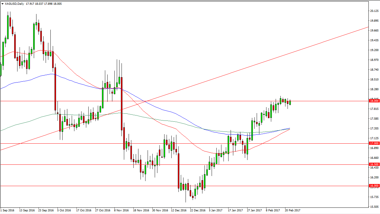 Silver markets initially tried to break above the $18 level during the day on Wednesday, but then pulled back. As I write this article towards the end of the New York trading session, we have peaked back above the $18 level again. If we can break above the $18.10 level, the market should then reach towards the 18.50 level above, and then eventually the $19 level. Eventually, I believe that there is more than enough buying pressure underneath to continue to lift silver. Ultimately, this market is seeing longer-term bullish pressure, and I believe that there is a significant technical signal happening right now.