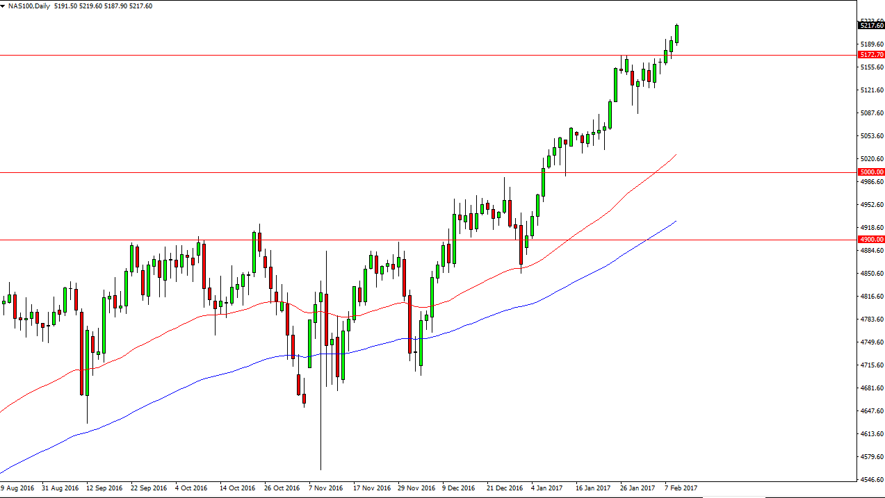 The formation that we had seen last week showed quite a bit of pressure beating against the resistance, and now that we have clear that, the market more than likely will continue to show signs of strength. Longer-term, I believe we go to the 5250-handle next, and then eventually the 5300 handle after that. I have no interest whatsoever in selling the NASDAQ 100 as it has been so strong.
