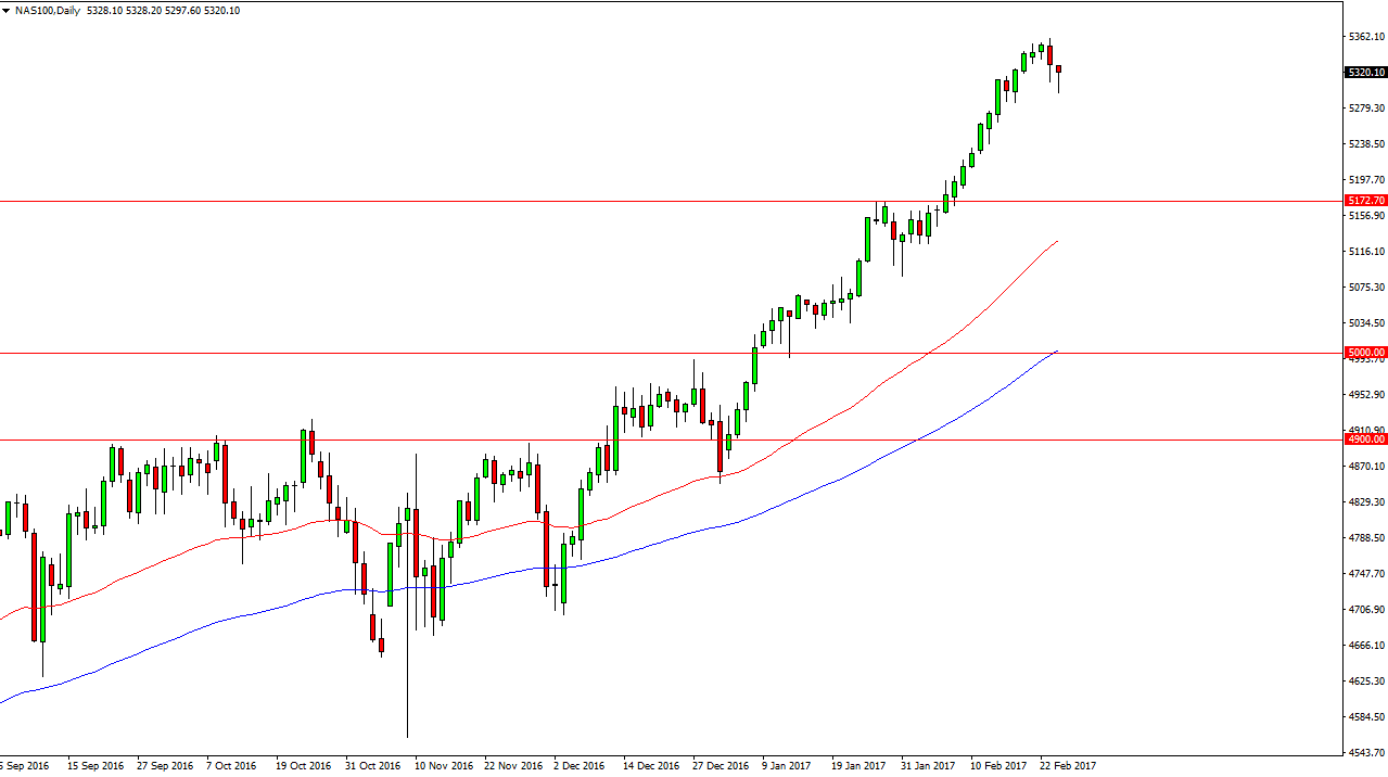 The S&P 500 initially fell on Friday but as we have continued to see, buyers are willing to buy dips as the market seems to be well supported. The 2350 level offer support that I think runs down to the 2340 handle. If we can break down below there, then we go to the 2300 level. Nonetheless, I’m not willing to sell and every time we pull back I look at it is an opportunity to pick of value in a market that’s extraordinarily bullish. The 50-day exponential moving average has been offering dynamic support recently, so a pull back to that moving average could happen over the next several sessions. Nonetheless, I still think that would be a buying opportunity and I have no scenario in which I am willing to sell.