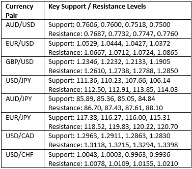 Key Support/Resistance Levels for Popular Pairs