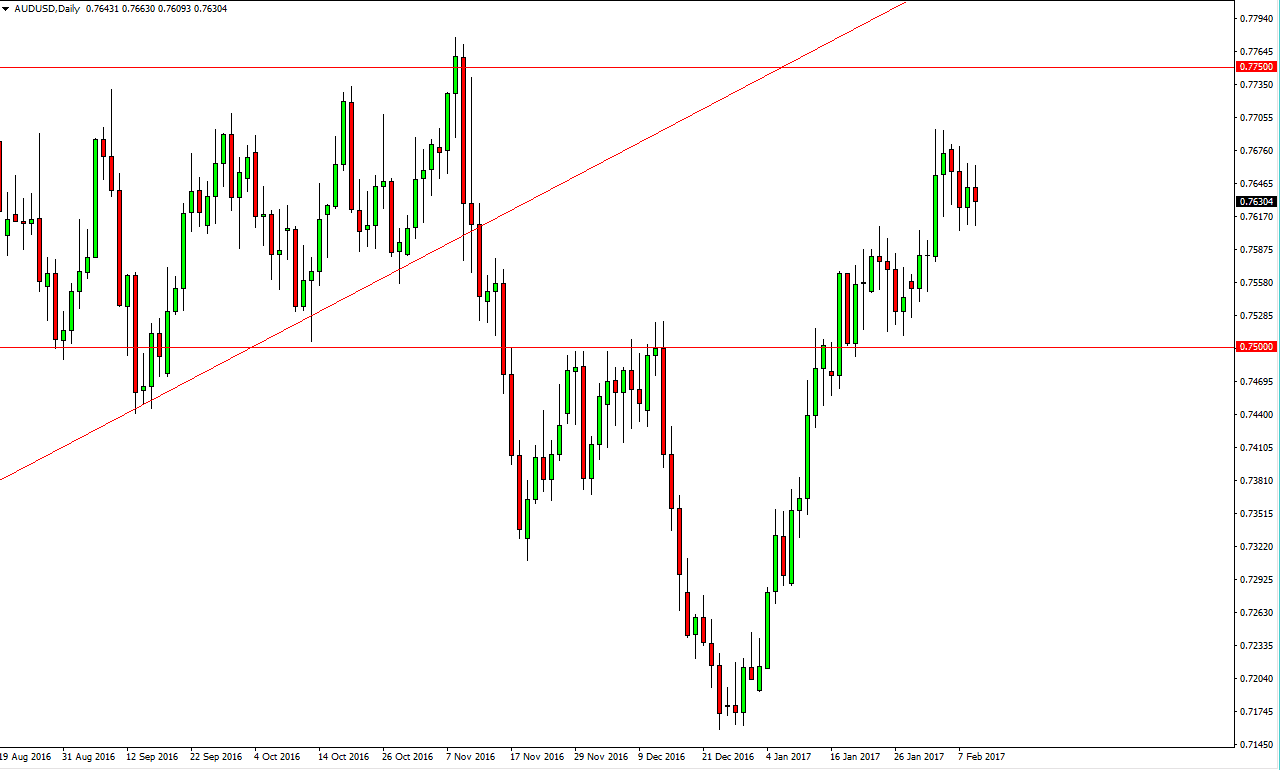 The Australian dollar had a volatile session during the day on Thursday, as we continue to bang around just above the 0.76 handle. The 0.76 handle has plenty of support all the way down to the 0.75 level, and the market is very choppy and heavily supported in that area. Because of this, I favor the upside but I believe that the gold markets will lead the way, so we need to see strength come back into the gold contract. Once it does, the AUD/USD pair should continue to go higher. The 0.7750 level above is massive resistance, and I think it’s going to take quite a bit of momentum to break above there. In fact, I believe that we will continue to buy on the dips going higher, at least in the short term. Expect quite a bit of choppy volatility, but in the and I think the buyers will continue to run this market. It’s not into we break down below the 0.75 level that we will see sellers get aggressive in my opinion.