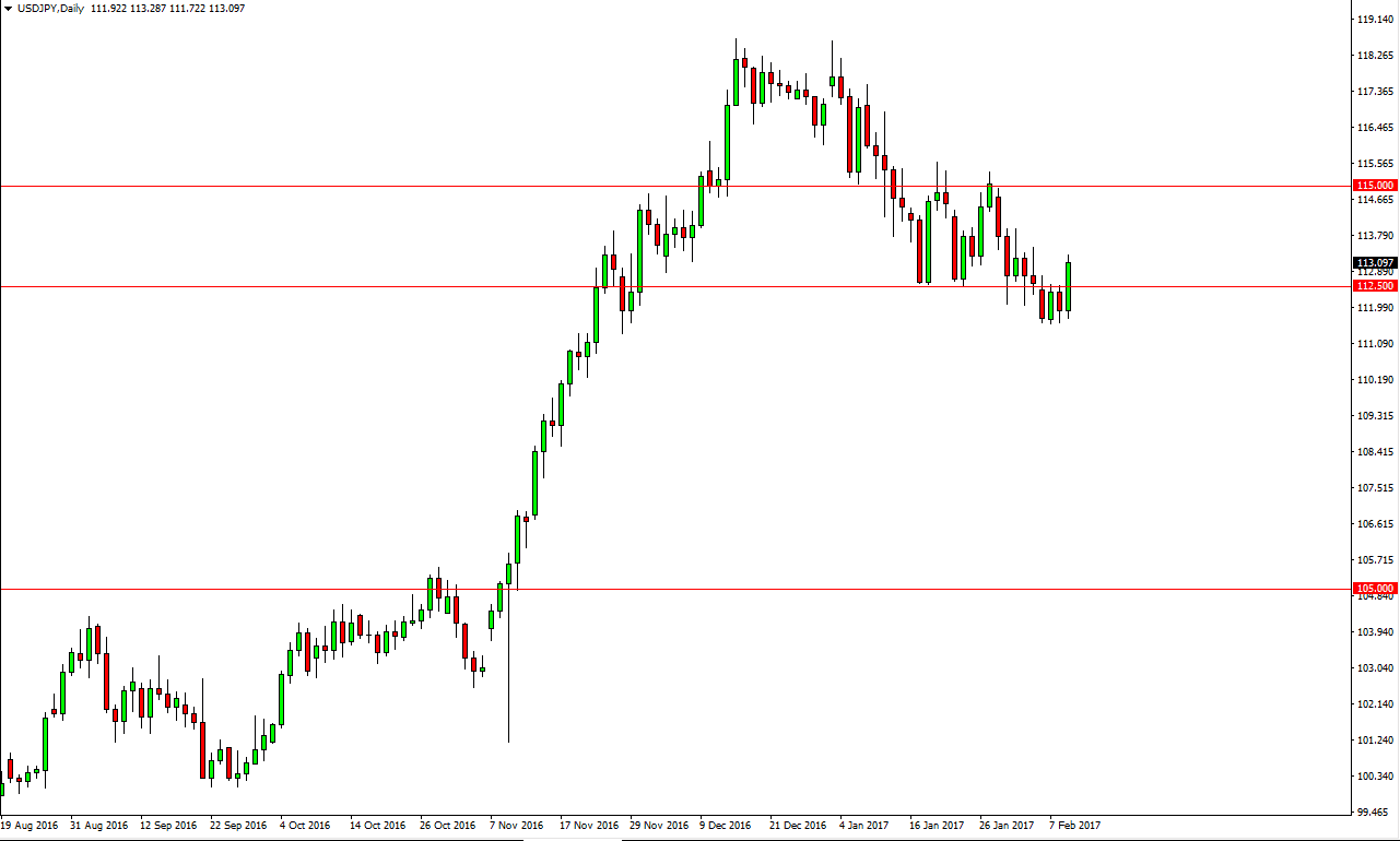 The US dollar broke above the 112.50 level, showing signs of strength. The fact that we are trying to close towards the top of the candle also suggests that we have more to go. I believe in the longer-term uptrend in this market and the 111.50 level offered every bit of support that I had anticipated. The fact that the candle is so strong suggests to me that we will more than likely have continued bullish pressure in the pullbacks will be looked at as potential value by traders. It’s going to be rocky, but I believe that this market will then reach towards the 115 level above that is resistance. I don’t have any interest in selling, and believe that the uptrend will continue longer term.