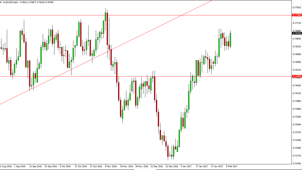 Even if we fall from here, I would anticipate that the 0.76 level should offer support, so I have no interest in selling this market currently. In fact, I believe there is a massive amount of support below the 0.76 level and extending all the way down to at least the 0.75 level, and I could even make an argument for the 0.74 level below there. In other words, I’m either going to get a buying opportunity or stay on the sidelines of this market. I currently have no interest in selling the Australian dollar, and I believe that will be the way going forward, simply waiting for buying opportunities.