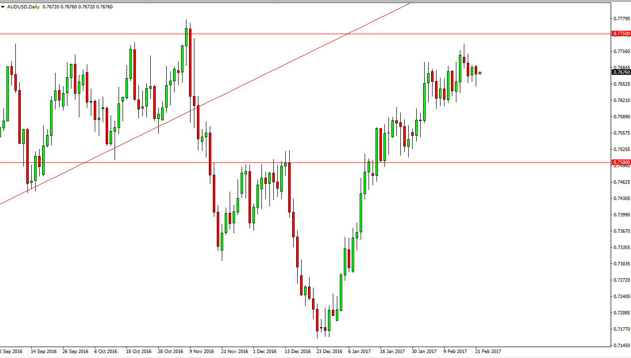 The 0.76 level underneath is supportive, just as the 0.7650 level as. I think it is going to be a volatile and choppy, but given enough time I don’t see the reason why the buyers don’t come out on top, as we have seen quite a bit of strength in the Aussie. In fact, I don’t even have a scenario in which I am willing to sell anytime soon.