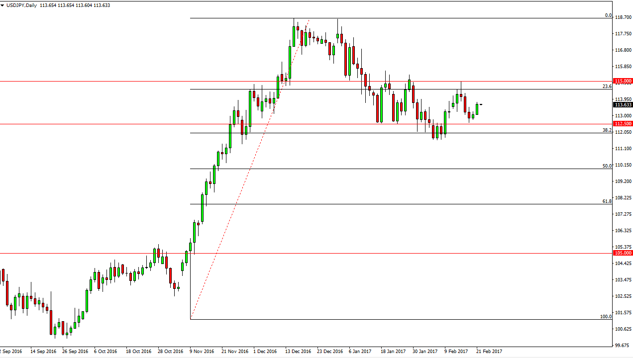 The USD/JPY pair had a bullish session on Tuesday as we continue to see bullish pressure underneath. The Bank of Japan will continue to have a very loose monetary policy, so I believe that ultimately we will go higher. The 115 level above will be resistive, so I think were going to see is another attempt to break above there. Short-term traders will be buyers, short-term pullbacks could offer value. We have bounced directly from the 38.2% Fibonacci retracement level, a common occurrence in a strong uptrend. If you can keep your eye on the longer-term move, it can give you quite a bit of confidence as this pair does tend to be volatile.