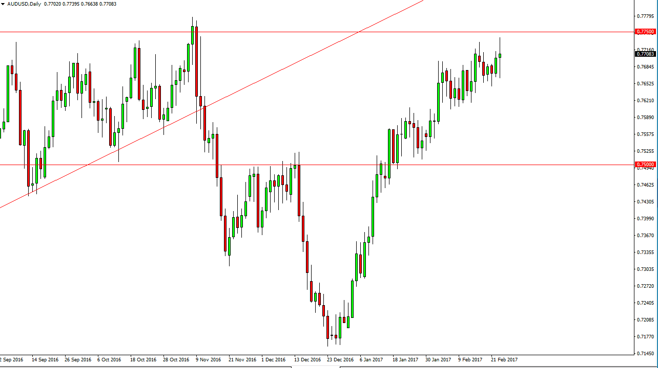 In the meantime, I’m buying short-term pullbacks as an offer short-term buying opportunities. I think we need to see the gold markets clear the $1250 level significantly to continue to go higher here. I have no interest in shorting, there’s far too much in the way of bullish pressure so with this being the case it’s very unlikely that I will even consider that. It’s likely that waiting for the breakout is about as good as it gets.