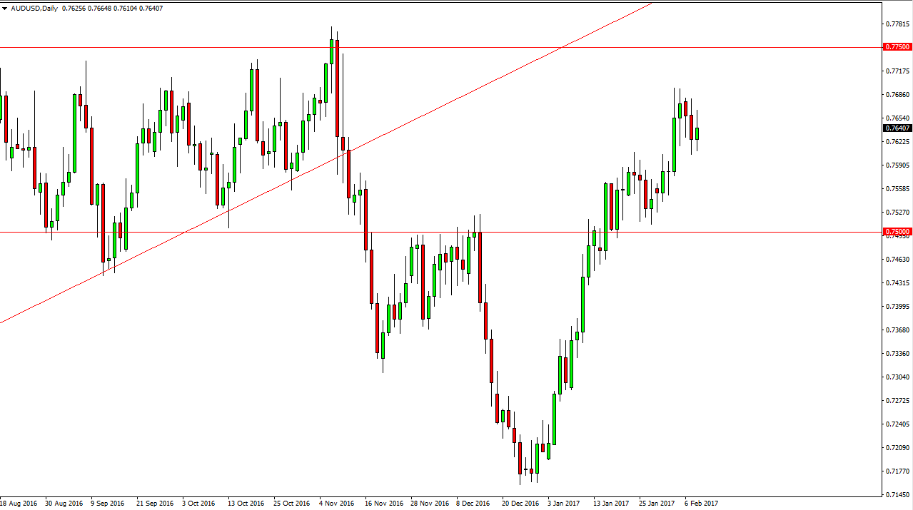 The Australian dollar had a choppy session on Wednesday, forming a relatively neutral candle. The Australian dollar has been rallying for some time, and the 0.76 level has offered quite a bit of support. Any type of supportive candle in this area should be a buying opportunity, just as a break above the top of the candle for the day on Wednesday would be as well.