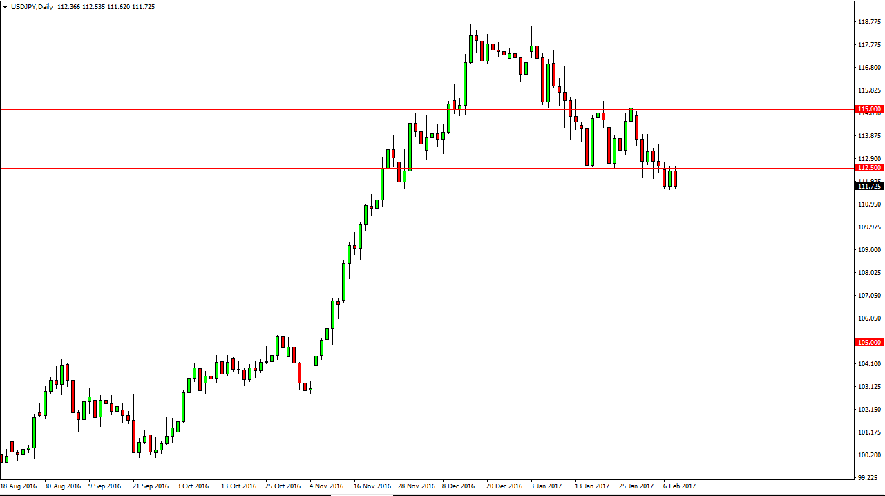 The USD/JPY pair found resistance at the 112.50 level, yet again. This is an area that previously was support but now should act as resistance. Further weighing upon the market is the shooting star from a few sessions ago that’s is just above there as well. Because of this, the market will continue to struggle to get above there. However, I do believe that the longer-term uptrend is still intact, and because of that if we can break above the top of the shooting star from the Friday session, the market will more than likely reach towards the 115 level above. I still believe that the 111.50 level underneath continues to offer support, and if we can break down below there the market should then reach to the 110 handle. Either way, it’s going to be volatile but I am currently waiting for an opportunity to take advantage of the longer-term uptrend.
