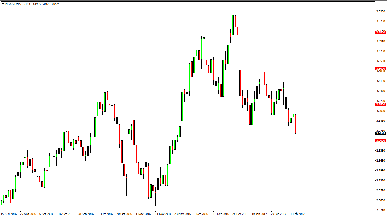 The natural gas markets broke down on Friday, slicing through the $3.10 level to reach towards the $3.00 level. The $3 level should be an opportunity to break down even further if we can get below there, and perhaps reach towards the $2.60 level. However, there is a significant amount of support at this area, especially when you look at the longer-term charts. A bounce from here could be a nice selling opportunity based upon exhaustion though, especially considering the $3.25 level above. I believe that the natural gas markets have peaked, as there is a significant lack of demand coming out of the United States. Before you know it, the markets should do with the fact that it’s becoming warmer out, and that will drive down the value of this commodity.