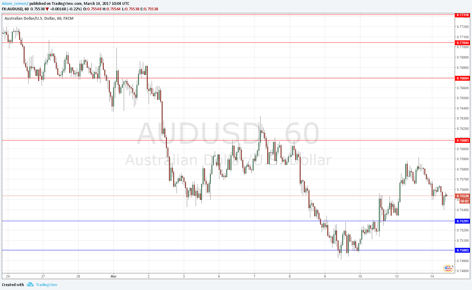 Go long following some bullish price action on the H1 time frame immediately upon the next entry into the zone between 0.7525 and 0.7500.