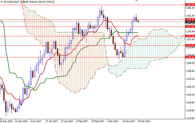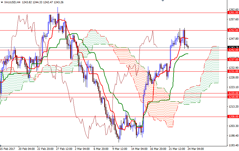 Gold snapped six consecutive days of gains as the greenback edged higher and global equities markets saw a modest rebound. Technical selling was also behind gold’s 0.30% decline on Thursday. The XAU/USD pair traded as high as $1253.16 an ounce but a failure to sustain a push above $1252 weighed on the market. As a result, prices headed towards the support at $1242.