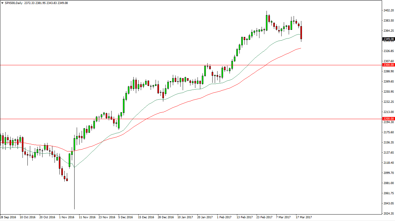 The S&P 500 initially tried to rally during the day on Tuesday, but you can see struggled. We ended up breaking below the 20-day exponential moving average for the first time in 3 months, which of course is a very negative sign. However, this is a market that is still very well in an uptrend, and the 2350 level looks as if it is going to offer a significant amount of support. Even if we break down below here, I believe that the 2300 level is even more supportive. Because of this, I am a buyer on support of candles, but I will wait until a daily close that shows me either support or some type of impulsive moved to the upside. I have no interest whatsoever in selling this market.