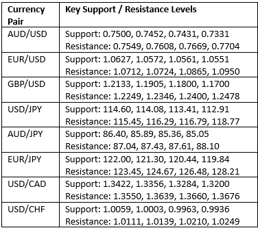 We teach that trades should be entered and exited at or very close to key support and resistance levels. There are certain key support and resistance levels that should be watched on the more popular currency pairs this week, which might result in either reversals or breakouts: