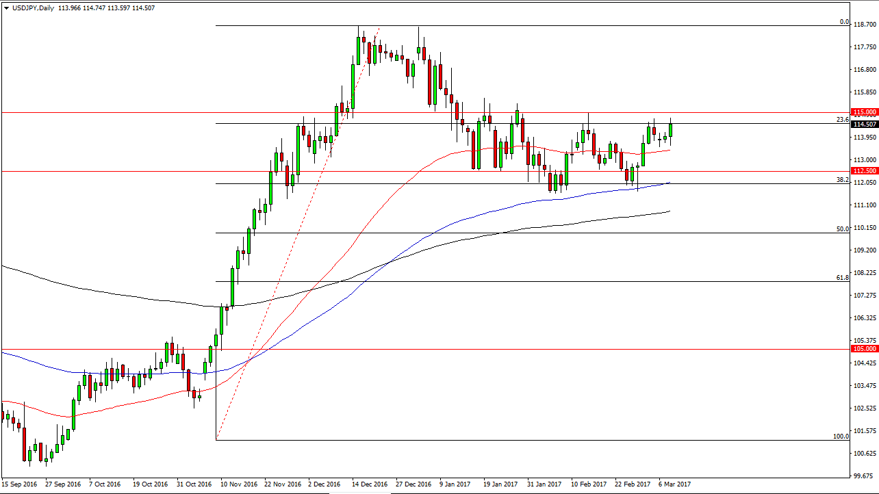 The USD/JPY pair initially fell during the day on Wednesday, but found enough support at the 50-day exponential moving average to continue bouncing. I find it interesting that we had formed a higher low, which is the very essence of an attempt at an uptrend. If we can break above the 115 handle, the market should then go much higher, at least to the 118.50 level. The 50-day exponential moving average is an obvious indicator, but I also find it interesting that this happened on a day when the ADP job numbers came out much stronger than anticipated. I recognize that it is going to be a fight to get above the 115 handle, but as soon as we do, I think the floodgates will open and we will go much higher.