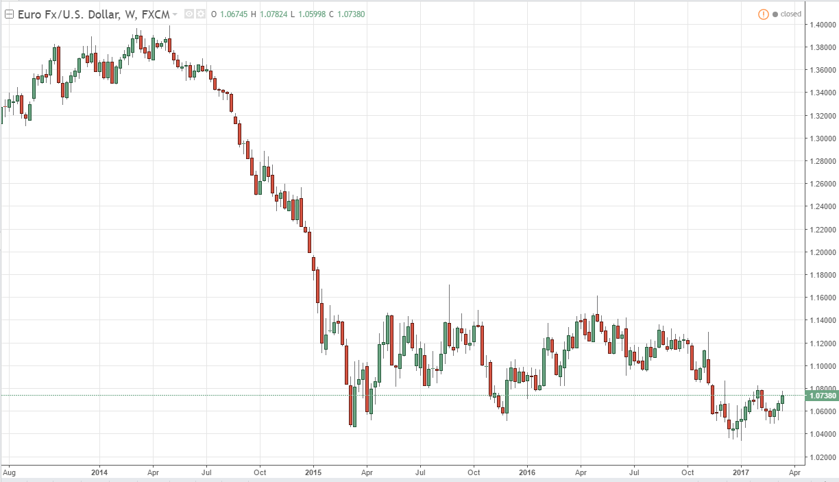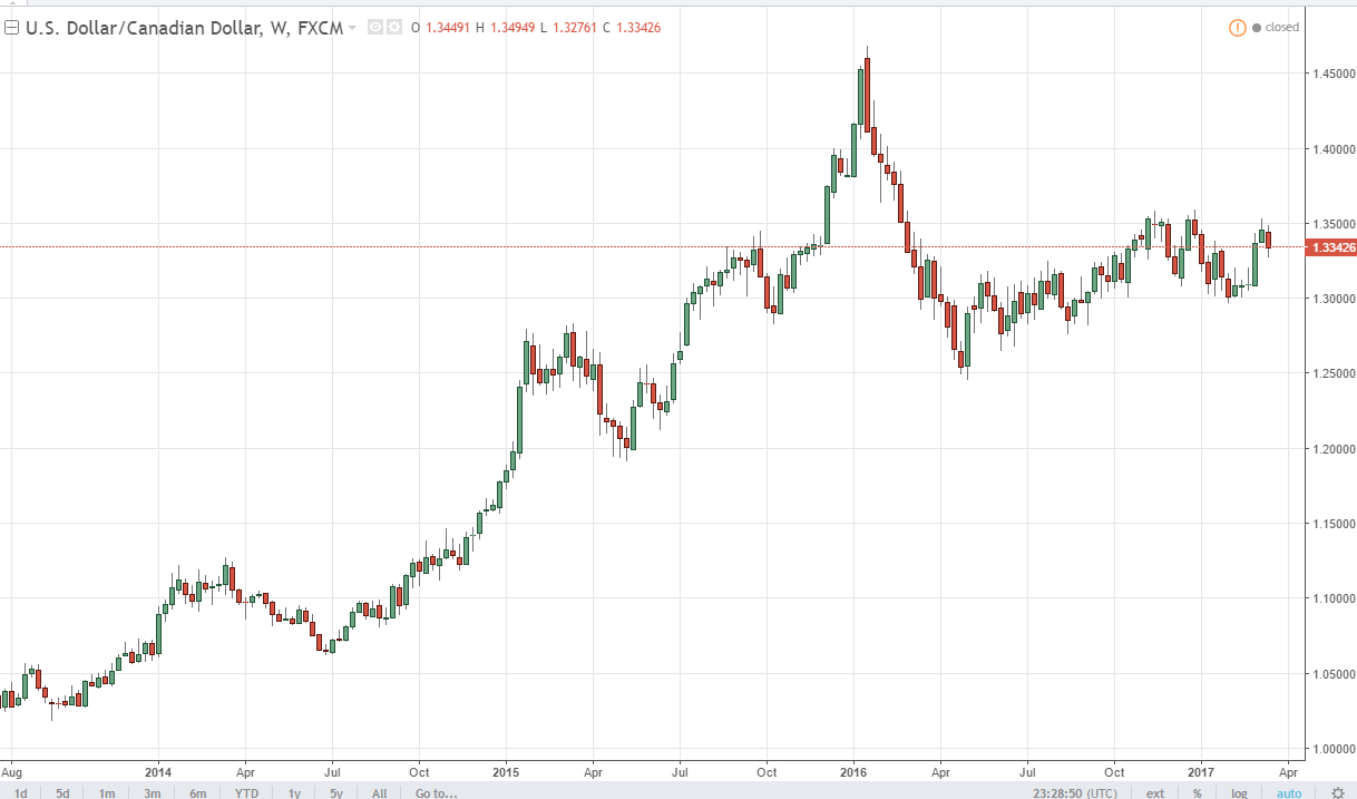 The Australian dollar continues the power higher against the New Zealand dollar, and quite frankly the only thing that caused any type of trouble in this market over the past week was the psychological significance of the 1.10 handle. I think pullbacks continue to be buying opportunities, and the 1.08 level should now act as support. Longer-term, I expect that this market will reach towards the 1.1250 level. Keep in mind that gold has a major influence on the Aussie dollar, so if it goes higher, this market should as well.