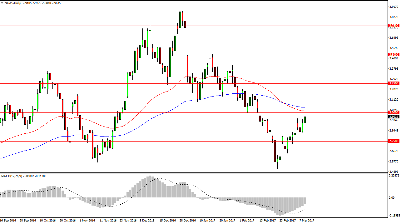 Natural gas markets initially fell during the day on Thursday but turned around to form a bullish candle, as we reach towards the $3 level. This is an area where I think we’re going to see quite a bit of selling pressure, mainly because of the large, round, psychological significance of the number and of course the fact that it was such previously considerable support. And exhaustive candle is what I’m looking for, especially considering that the 50 and 100-day exponential moving averages are sitting just above. Today could be a little bit choppy due to the jobs report out of America, but quite frankly no matter what happens, I have no interest in buying as it is such a strong downtrend and of course there is the oversupply issue that continues to plague the market.
