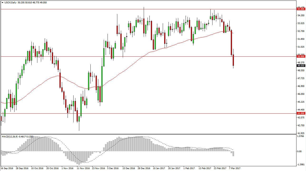 The oil markets continue to struggle during the Thursday session, as the short-term rally that opened the day turned around and we broke well below the $50 level. This is a psychological win for the sellers, and thus I believe we are going to continue going lower. Anybody who’s been listening to me knows that I’ve been waiting for the breakdown, and this is it. I believe the market will then reach towards the $45 level below, but we will get a bounce from time to time. Those bounces are selling opportunities, and I think that will be the case for some time. Currently, I have no interest in buying oil, and quite frankly I don’t understand why it stayed as high as it did for so long.