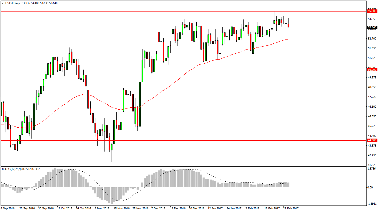 The WTI Crude Oil market initially rallied on Wednesday, but continued to find resistance near the $54.50 level. Extending all the way to the $55 handle, there seems to be a massive amount of resistance in that area. Today has the inventory numbers coming out of the United States, and that of course will cause quite a bit of volatility. I believe that the market will probably pull back slightly from here, and then react accordingly to the announcement. However, if we manage to break above the $55 level that might be the easiest signal to take, as it would suggest that oil markets are broken out to the upside and will continue to go to the $60 level longer term. Unfortunately, I don’t think it’s going to be quite that easy. Continued back and forth trading makes this a scalpers market at best.
